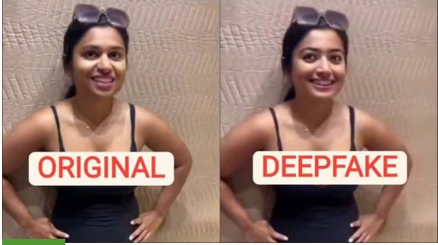 Screenshot from a video posted by Zara Patel (Left), alongside a deepfake showcasing Rashmika Mandanna (Right).